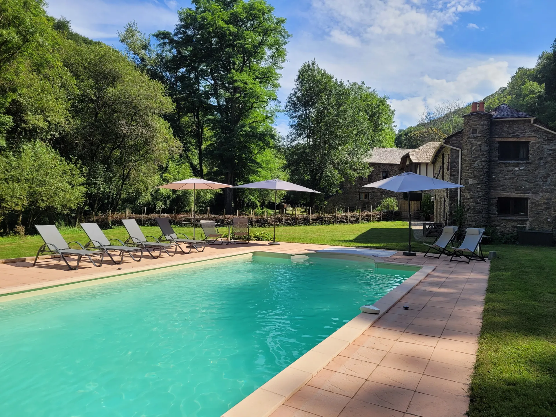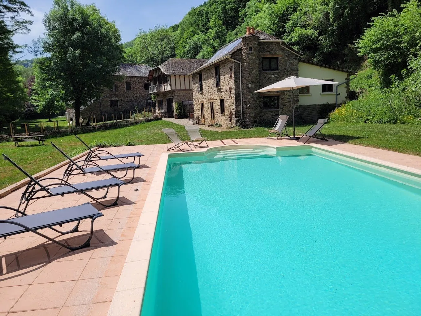 Gîte et chambres d’hôte au coeur de la NatureMaison indépendante possédant 4 chambres avec salles de bains et WCPiscine privativeJardin donnant sur la rivière Viaur