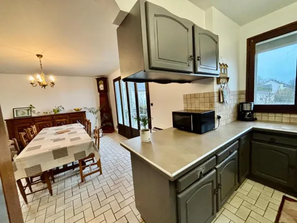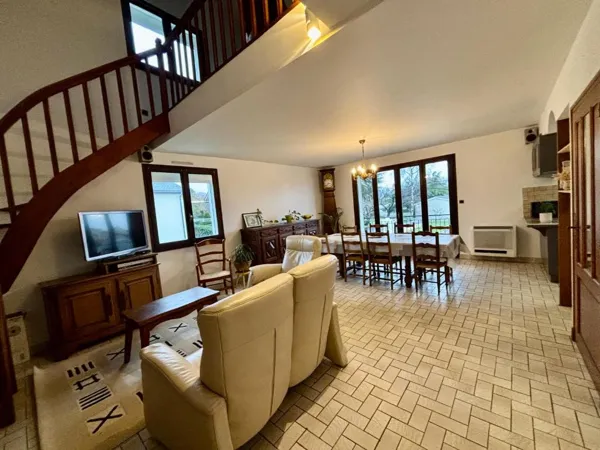 – Le 1er étage: accès à une grande veranda de 26m2/ une grande pièce de vie avec salon, salle à manger et une cuisine. De cette pièce, un couloir dessert trois chambres doubles, une salle de bain et un wc.