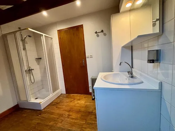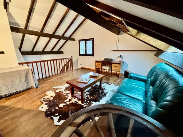 – Le 2ème étage: accès à une mezanine aménagée en bureau (pièce ouverte) et deux chambres (pièce fermée) ainsi qu’une salle de bain.